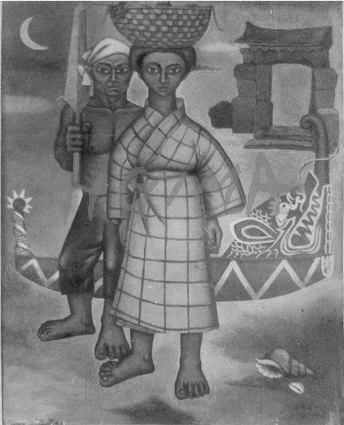 ファイル名:OM10 題名:島の人達 寸法:30号 (縦91cm)