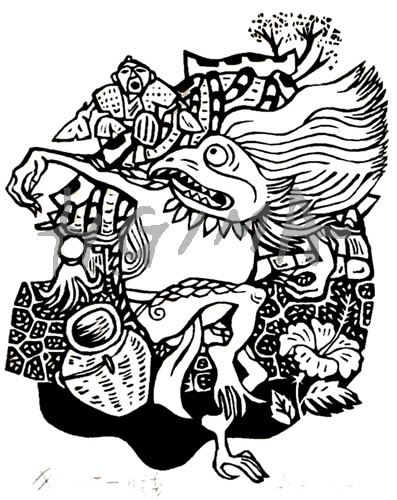 ファイル名:15S03 題名:キジムナーの誘い サイズ:27X32cm