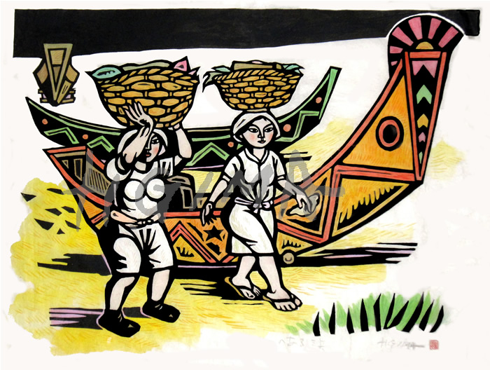 ファイル名:4L01 題名:ハーリーのある浜 サイズ:53X48cm
