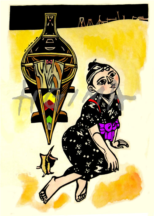 ファイル名:4L06 題名:サバニと美童 サイズ:47X62cm