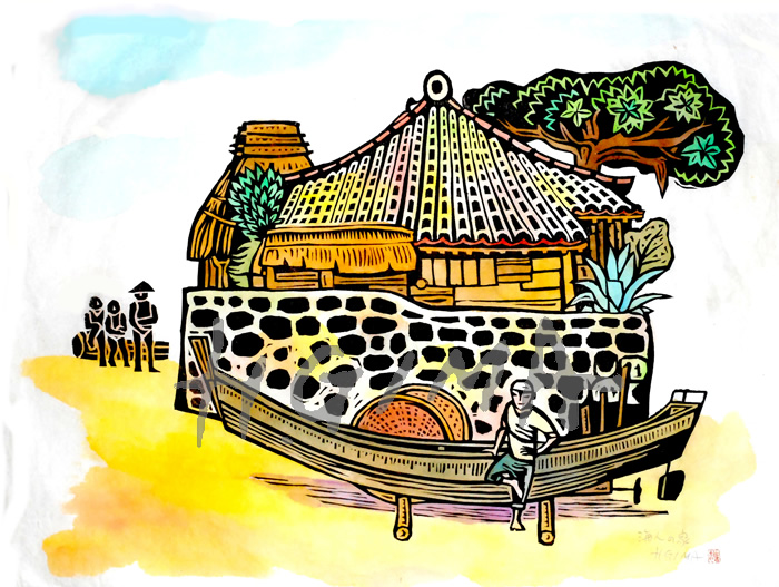 ファイル名:4L07 題名:海人の家 サイズ:64X48cm