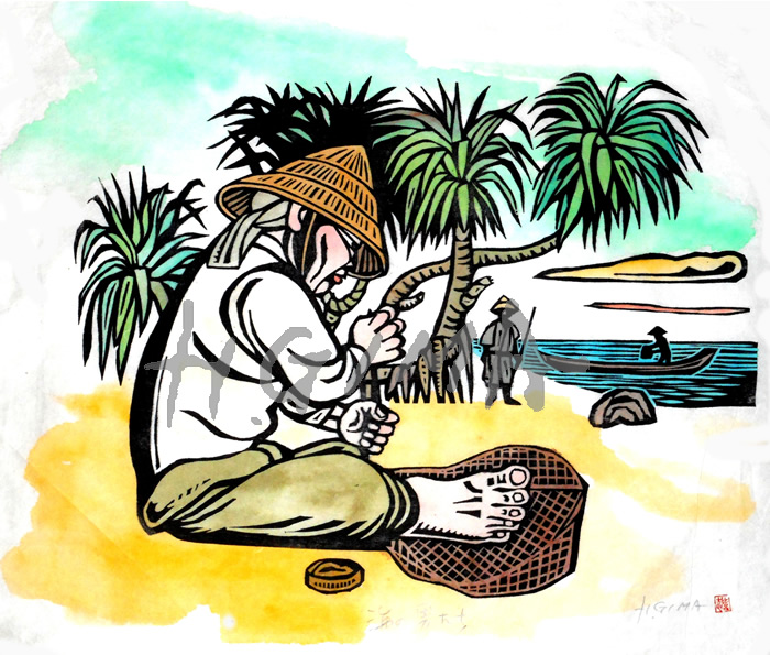 ファイル名:4L09 題名:海の男たち サイズ:64X47cm