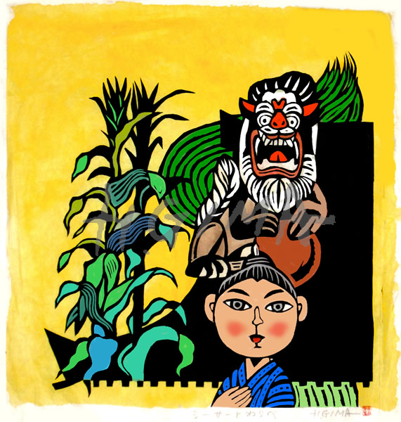 ファイル名:6M01 題名:シーサーとわらべ サイズ:43X51cm