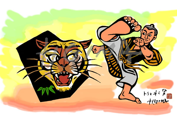 ファイル名:9M01 題名:トラとたたかう男 サイズ:48X31cm