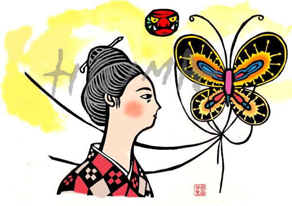ファイル名:9M23 題名:凧と女 サイズ:48X32cm