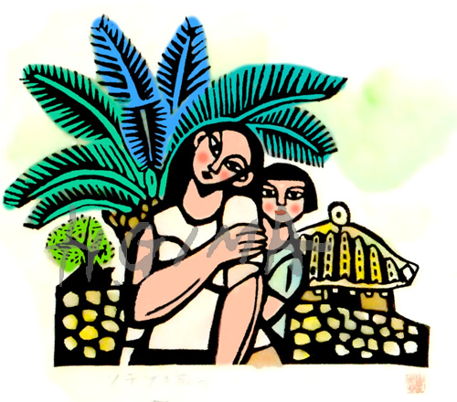 ファイル名:9S22 題名:ソテツの前で サイズ:34X25cm